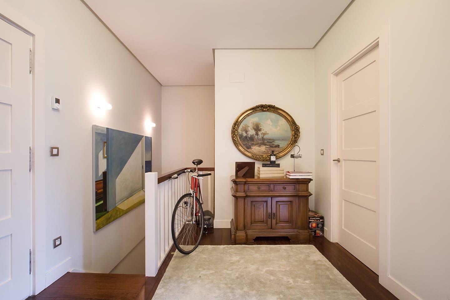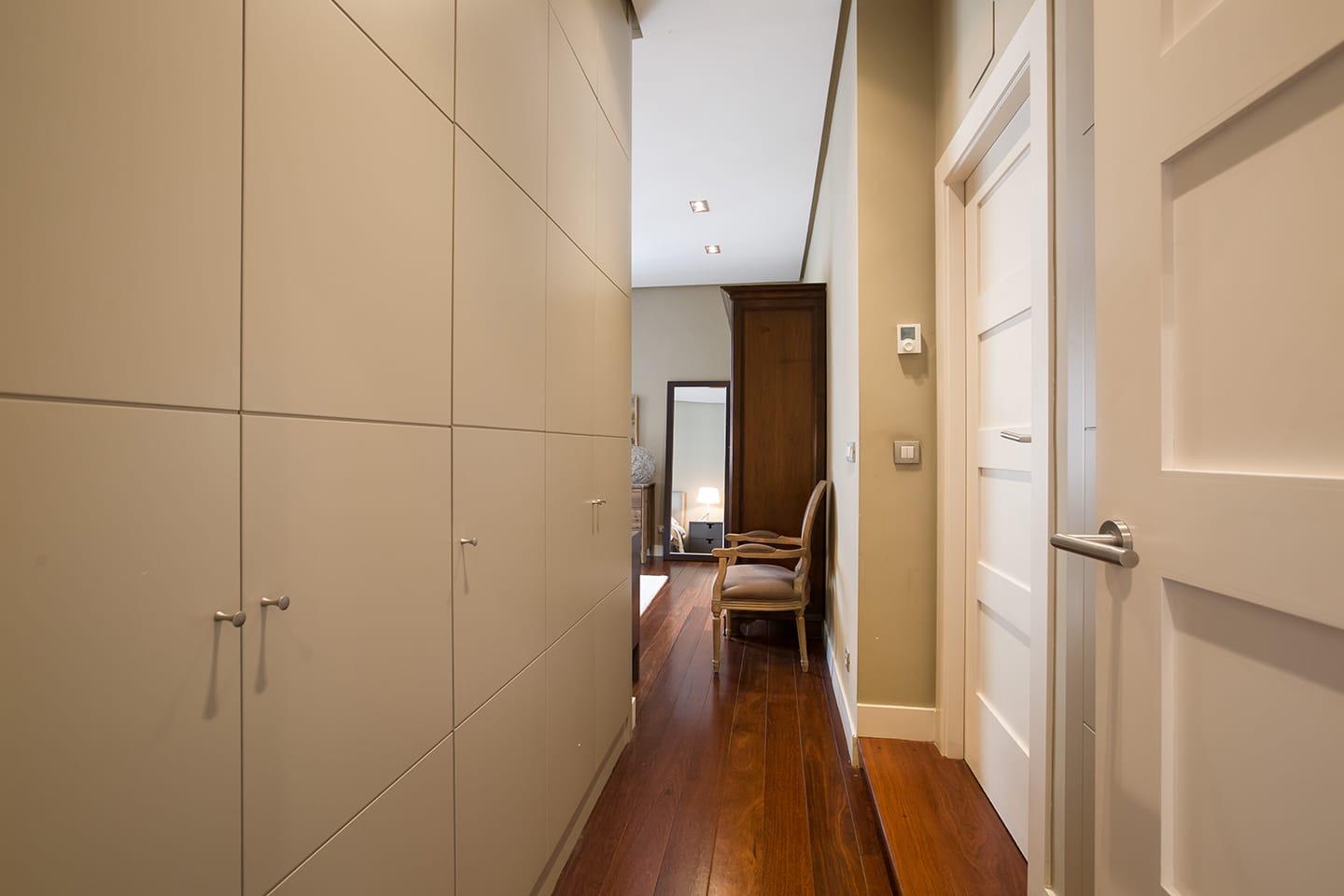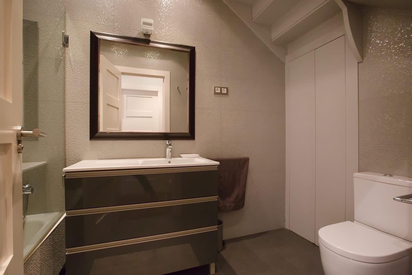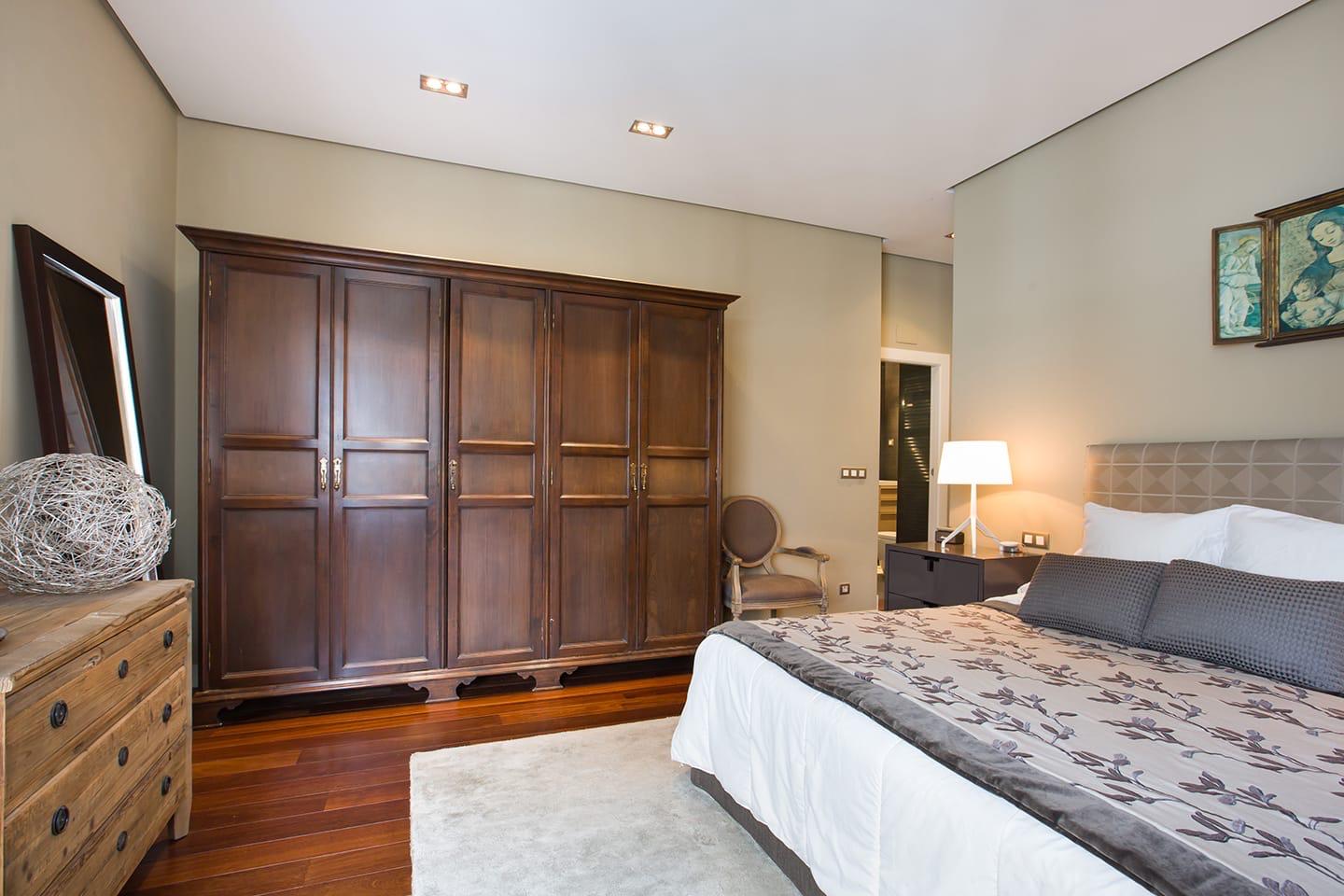 Bajando unas pequeñas escaleras, accederás a la zona de descanso, donde se ubica el dormitorio principal con su propio cuarto de baño con ducha. También hay dos dormitorios adicionales que comparten un baño, perfectos para familias o visitas. Con 142 m² construidos, este dúplex ofrece espacio suficiente para disfrutar de la vida en la ciudad sin renunciar a la comodidad.