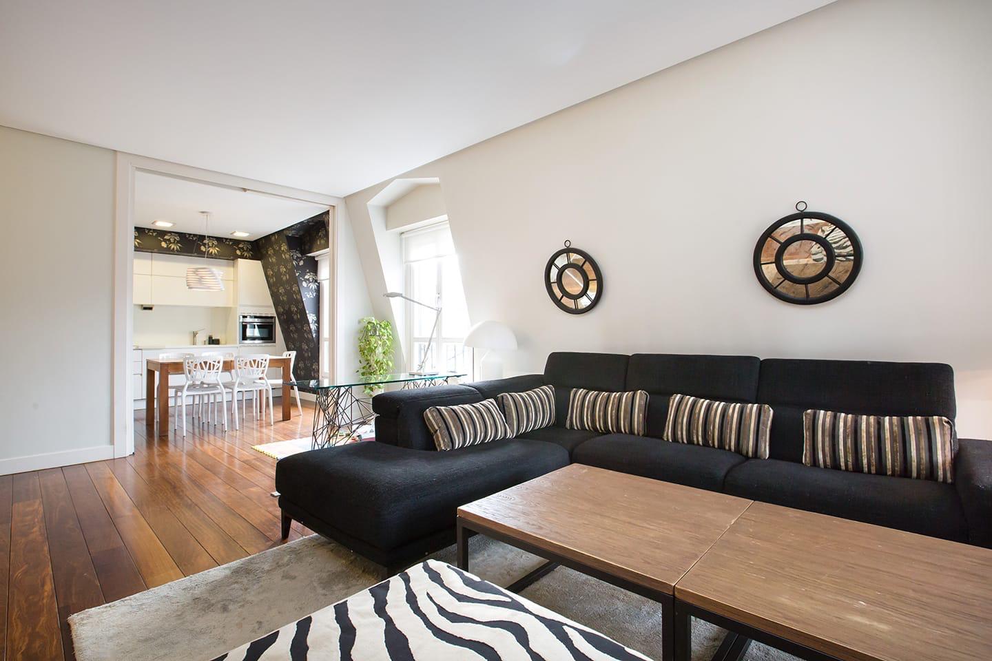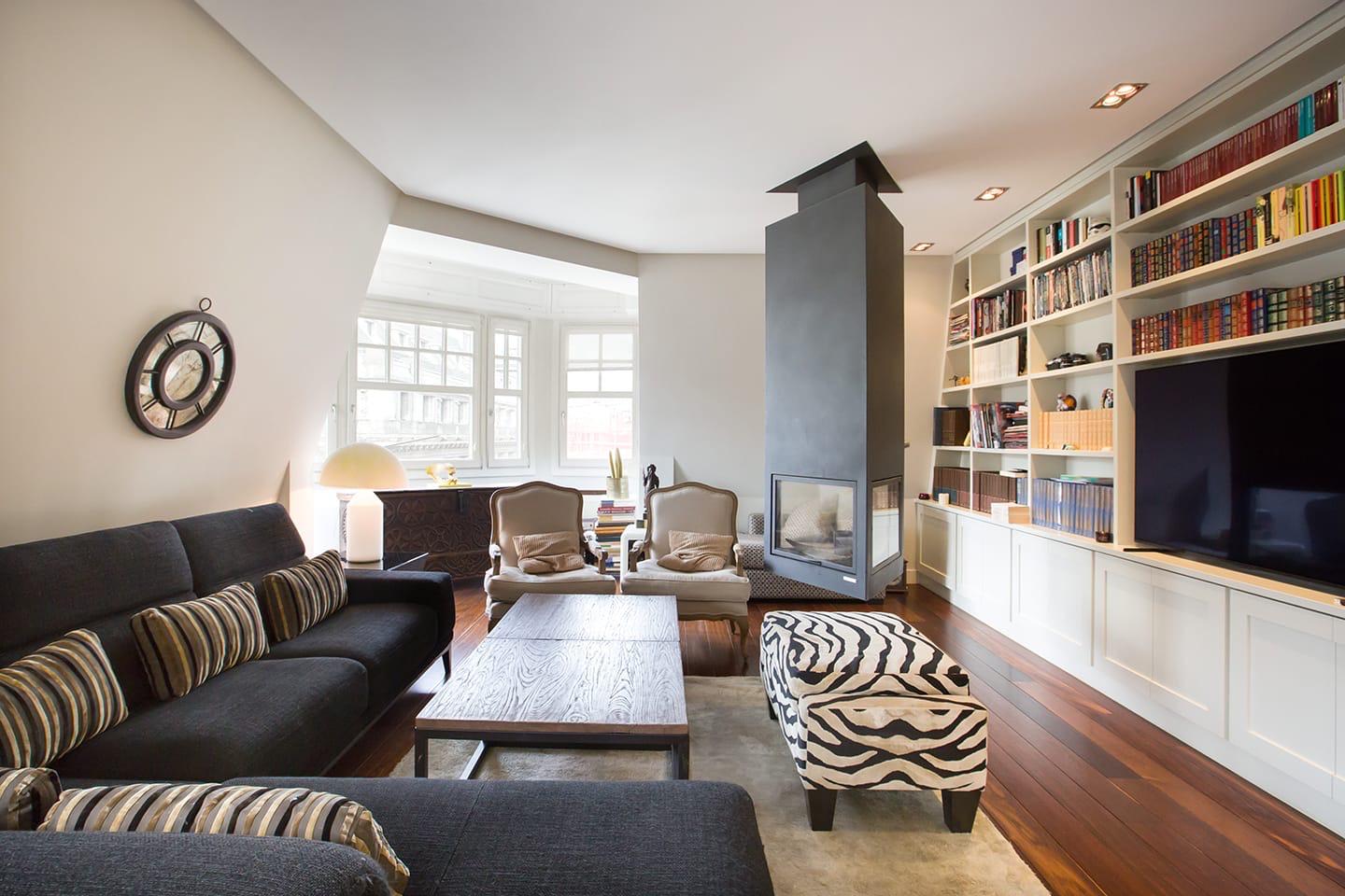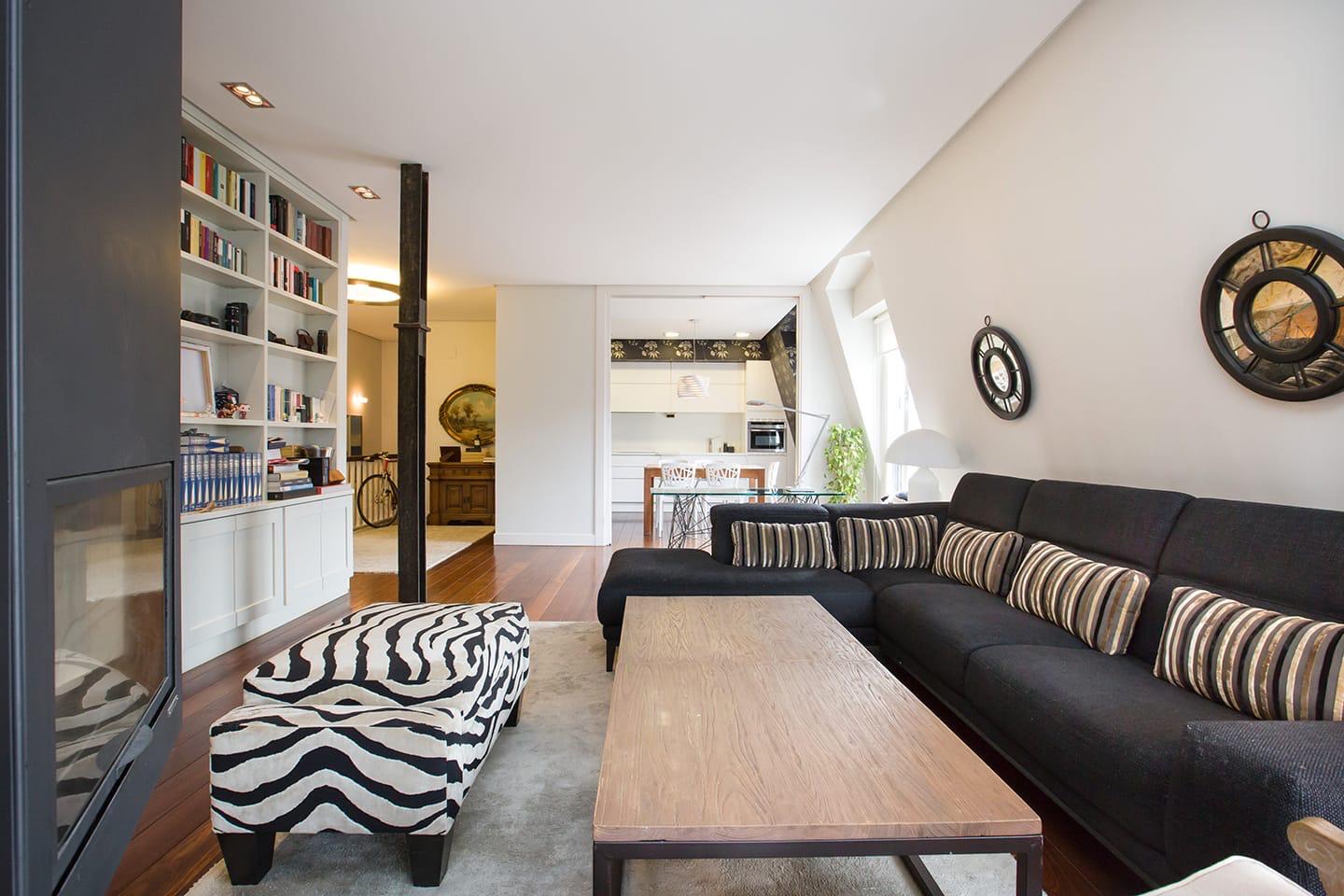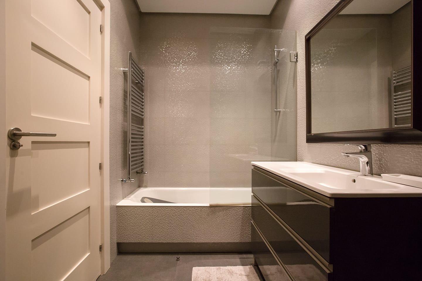 Bajando unas pequeñas escaleras, accederás a la zona de descanso, donde se ubica el dormitorio principal con su propio cuarto de baño con ducha. También hay dos dormitorios adicionales que comparten un baño, perfectos para familias o visitas. Con 142 m² construidos, este dúplex ofrece espacio suficiente para disfrutar de la vida en la ciudad sin renunciar a la comodidad.